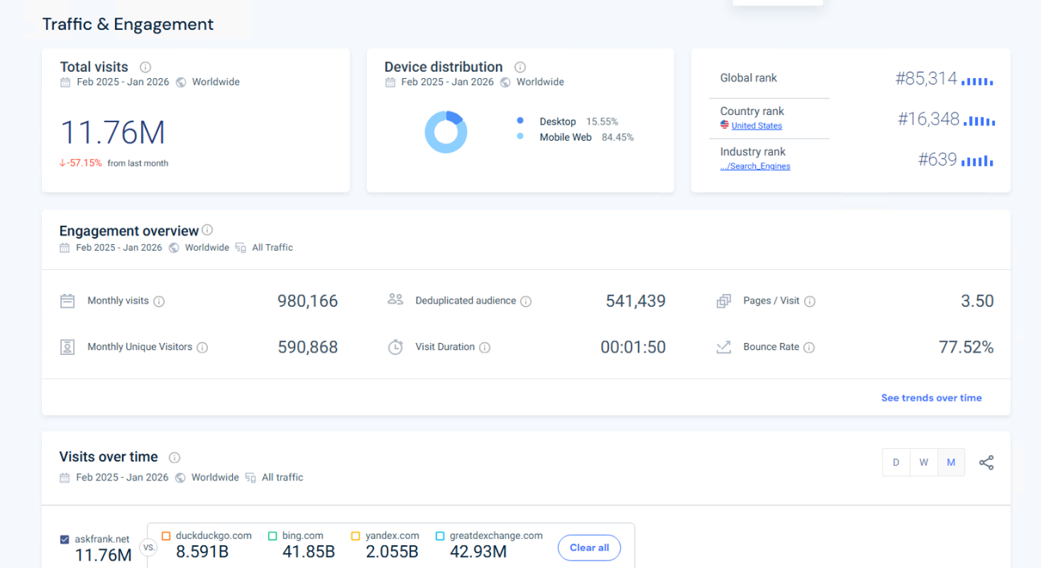 SimilarWeb now serves as one of the main third party platforms for estimating website traffic, engagement, referral sources, audience geography, and overall ranking visibility. In practical terms, it fills much of the role Alexa once held, but with a broader and more modern data model.